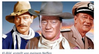 Die Revolverhelden, wie einst John Wayne und seine Mitspieler in seinen Wild-West-Filmen, wurden umgetauft in Friedrich Merz, Markus Söder und Lars Klingbeil. Die Drei aus dem Wilden Westen kämpften mit Revolvern für das, was sie für das Gute hielten. M.E. tun das Merz, Söder und Klingbeil auch, sie halten das für das Gute – nur nicht mit Revolvern. Das Wahlergebnis, sagte Söder, sei die „letzte Patrone der Demokratie“. Komisches Bild. Aber es ist eindeutig, dass man die drei für Revolverhelden halten kann. Übrigens: Der SPD-Generalsekretär Linnemann sagte kürzlich „einfach mal machen“. Im wilden Westen hätte das John Wayne und Co überzeugt.