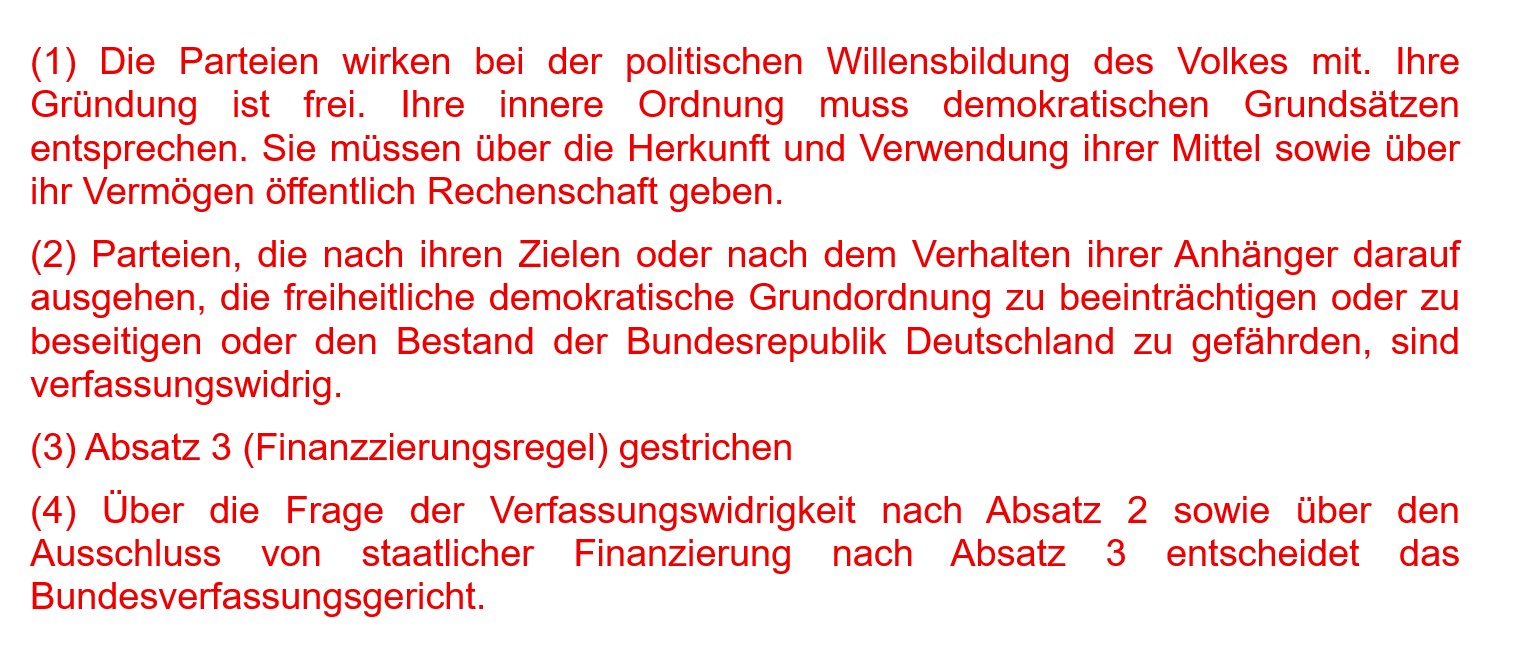 Jetzt wird’s praktisch! Parteien und ihre Programme sollen dem Volk helfen, also sollen sie nicht über das Volk, also über die Bundesbürger bestimmen. Das Wahlergebnis führte zur Koalition, zurzeit zur schwarz-roten Koalition. Die Groko (besser KleKo = kleine Koalition) ist aktuell ein undemokratischer Betrug. Warum? Bei den Schwarzen, CDU und CSU, sollte man das „Christlich“ streichen (ist in deren Programm irgendetwas christlich?) und bei den Roten, SPD, das „Sozial“ (auch hier: Was ist daran sozial außer dem „nicht mit uns“?). Den Parteien und deren Grandseigneurs fehlt das Volk, deren Bedürfnisse kennt man nur ungefähr. Die sogenannte Groko wäre dann eine Art Kronrat. „Christlich“ und „Sozial“ ist Betrug. Parteienschwindel wird unterdrückt.